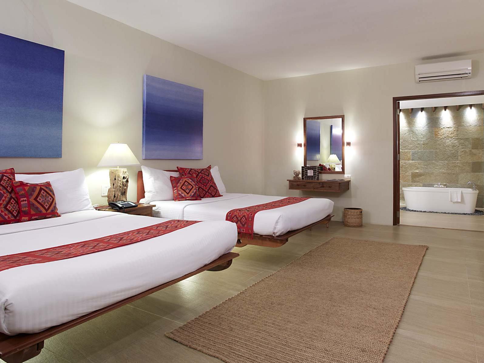 저는 이번에 수영장과 가까운 1층 디럭스 룸을 배정받았는데, 전반적인 우드톤 인테리어가 깔끔하고 이국적인 분위기를 자아냈습니다.